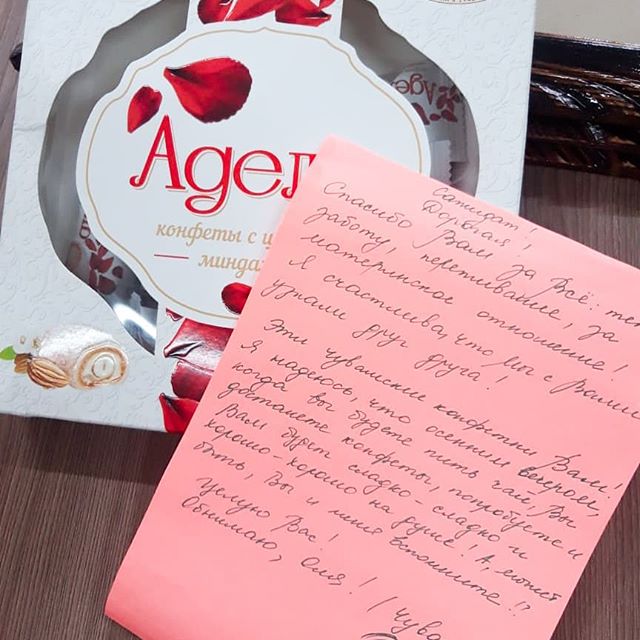 21.01.2020Прошедший в сентябре в г. Грозном конкурс педагогического мастерства "Учитель Года России" - 2019, помимо приобретенного бесценного опыта, связал десятки людей узами профессионального и дружеского сотрудничества.⠀Примером такого сотрудничества является дружба Физер Ольги Валериановны, учительницы английского языка из Республики Чувашия, финалистки конкурса "Учитель года России" - 2019 и нашего педагога Хадизовой Сажи Саидовны.⠀В знак признательности и в память о времени, проведённом в стенах Гимназии, Ольга Валериановна прислала Саже Саидовне вот такой чудесный презент, наполненный теплом и благодарностью!⠀Очень отрадно знать, что воспоминания о Грозном, Гимназии и, в частности, наших учителях и детях по сей день отзываются в сердцах наших дорогих гостей, друзей улыбкой и теплотой