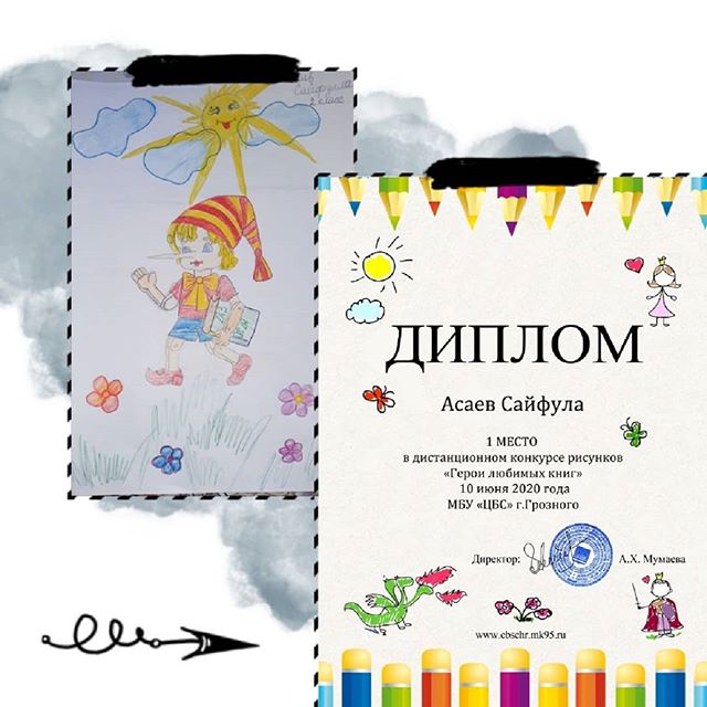 Асаев Сайфулла, ученик 3 "Г" класса МБОУ "Гимназия №14" занял I место в дистанционном конкурсе рисунков "Герои любимых книг"