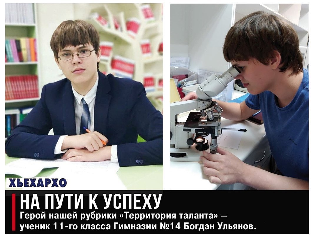 07.08.2020@gazeta_heharho Для подготовки ребенка к взрослой жизни необходимо обращать постоянное пристальное внимание на его формирование как личности. А чтобы дать ему правильное воспитание и развитие, нужно с малых лет прививать дисциплину, нормы поведения в обществе, высшие человеческие ценности и качества. Вдвойне хорошо, когда ребенок сам к этому стремится. Именно такой цельной личностью является ученик 11-го класса Гимназии № 14 Богдан Ульянов.Несмотря на то что Богдан очень скромный и немногословный парень, у него всегда присутствует желание занять достойное место в социуме, узнавать что-то новое, мальчик всегда стремится к знаниям.Специально для рубрики «Территория таланта» юноша рассказал о своем нелегком пути к вершинам Олимпа, о своих планах и мечтах!Первые достижения Богдана начались с побед в школьных математических олимпиадах «Кенгуру». Затем он стал принимать участие в различных онлайн-олимпиадах и занимать в них призовые места. Причем школьник пробовал свои силы в разных предметах – математике, биологии, информатике, физике и истории.В 9-м классе Богдан попробовал свои силы в региональном этапе Всероссийской олимпиады школьников (ВсОШ) по биологии.А уже этот год принес Богдану серьезные достижения. Последовательные занятия и дисциплинированность принесли свои плоды. Он стал победителем на школьном, городском и муниципальном этапах ВсОШ по математике и биологии, а также призером по химии. По двум предметам вышел на региональный этап, однако все его усилия были направлены на победу в олимпиаде по биологии. Богдан, пройдя предварительный отбор, участвовал в проекте «Олимп» Министерства образования и науки ЧР, направленном на подготовку школьников к Всероссийским олимпиадам по физике, химии и биологии. Школьник вместе с другими участниками проекта ездил в образовательный тур в г. Мытищи. В ходе обучения получил практические навыки решения олимпиадных задач по биологии разного уровня сложности, которые очень пригодились для победы. В региональном этапе Богдан стал призером и занял второе место.
