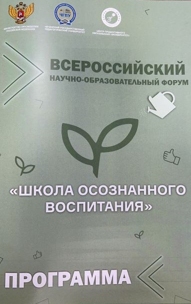 Спикером Всероссийского научно-образовательного форума "Школа осознанного воспитания"выступила заслуженный учитель ЧР, Почетный работник воспитания и просвещения РФ, заместитель директора и по совместительству наша коллега, Бисултанова Мадина Якубовна с докладом на тему: "Архитектура деятельностиклассного руководителя".