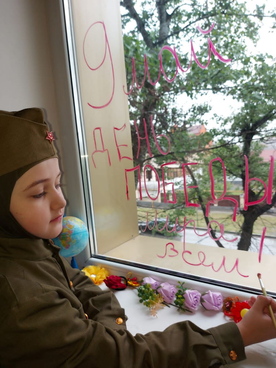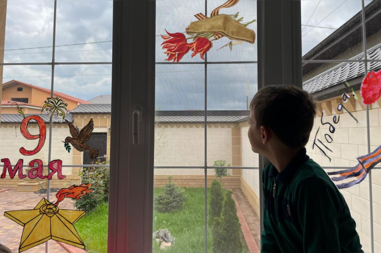 Гимназисты украсили свои дома символами, рисунками и надписями, посвящёнными победе советского народа над фашизмом в Великой Отечественной войне.