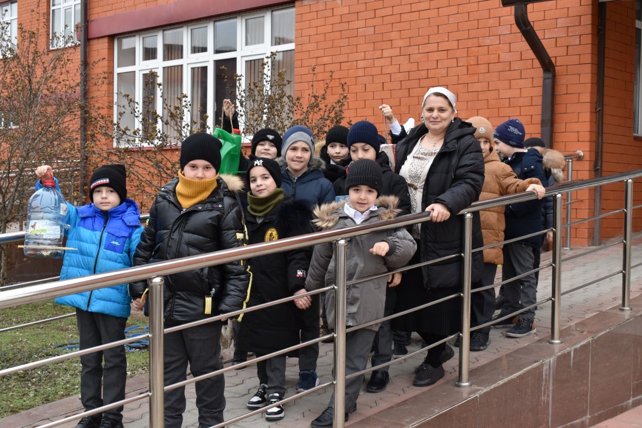 Мастерить из подручных средств «птичьи домики» и развешивать на ветках деревьев стало хорошей традицией, особенно среди школьников.Так же и наши учащиеся 1 «А» класса под руководством своей классной руководительницы Эльдиевой Зарган Дандаевны на уроке окружающего мира в рамках выполнения практической работы «Как зимой помочь птицам» сделали очень много интересных кормушек, каждая из которых отличается своей индивидуальностью и креативностью. После чего все вместе вышли и развесили во дворе Гимназии.Теперь у местных птиц появилось много красивых домов и вкусной еды!