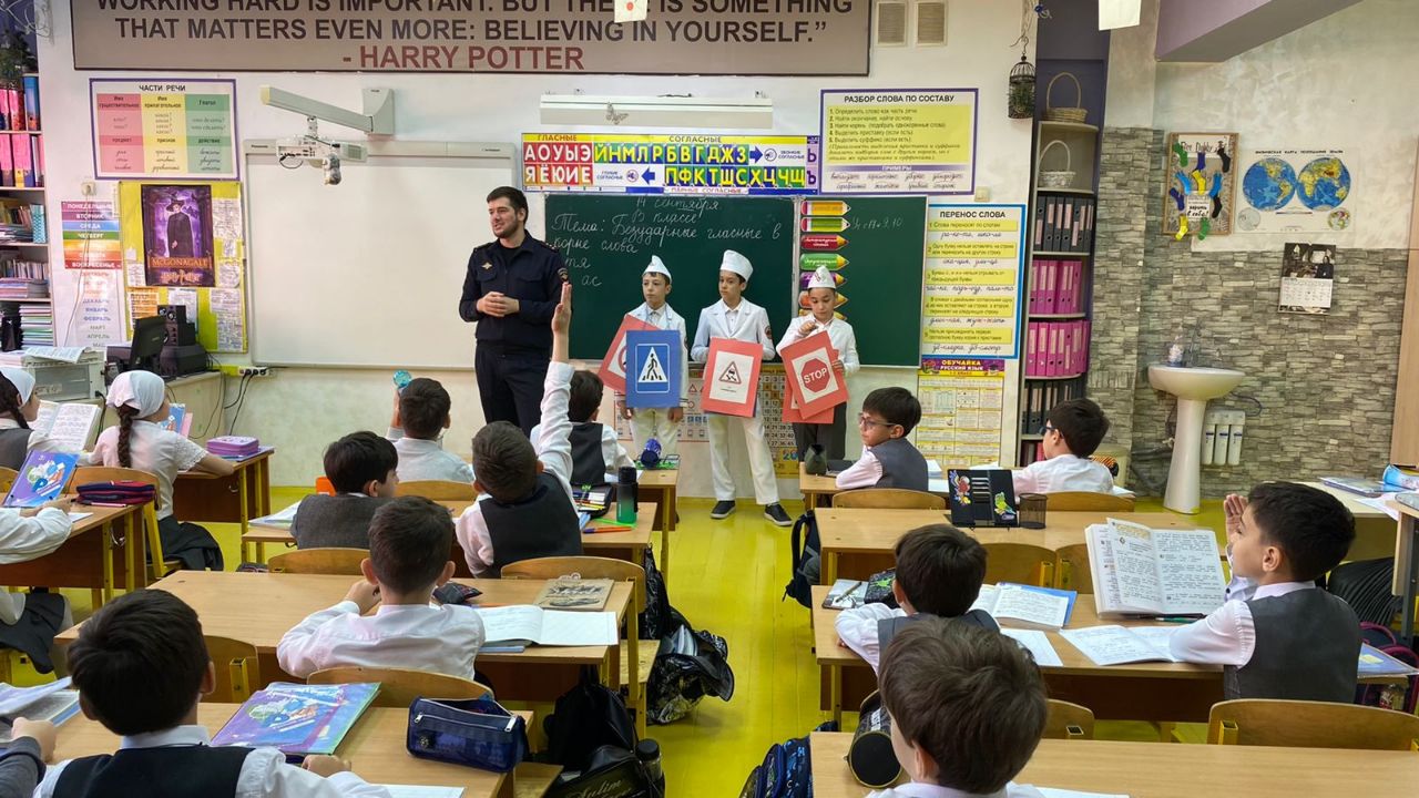 14.09.2023В МБОУ «Гимназия № 14» г. Грозного прошли профилактические беседы на тему безопасности на дорогах.