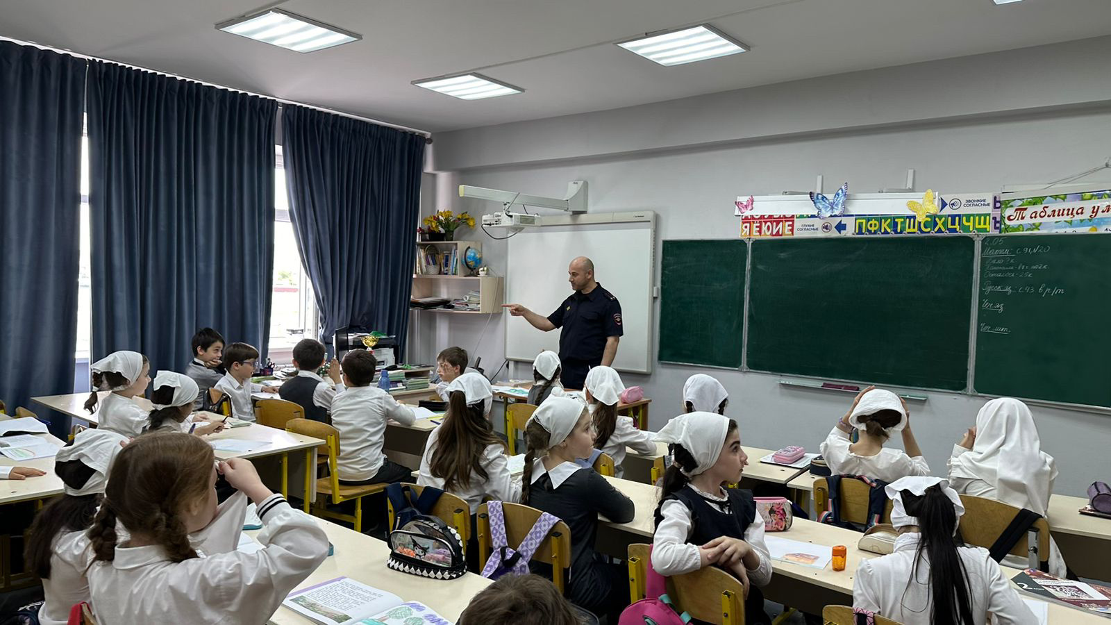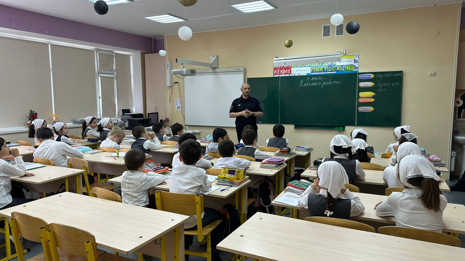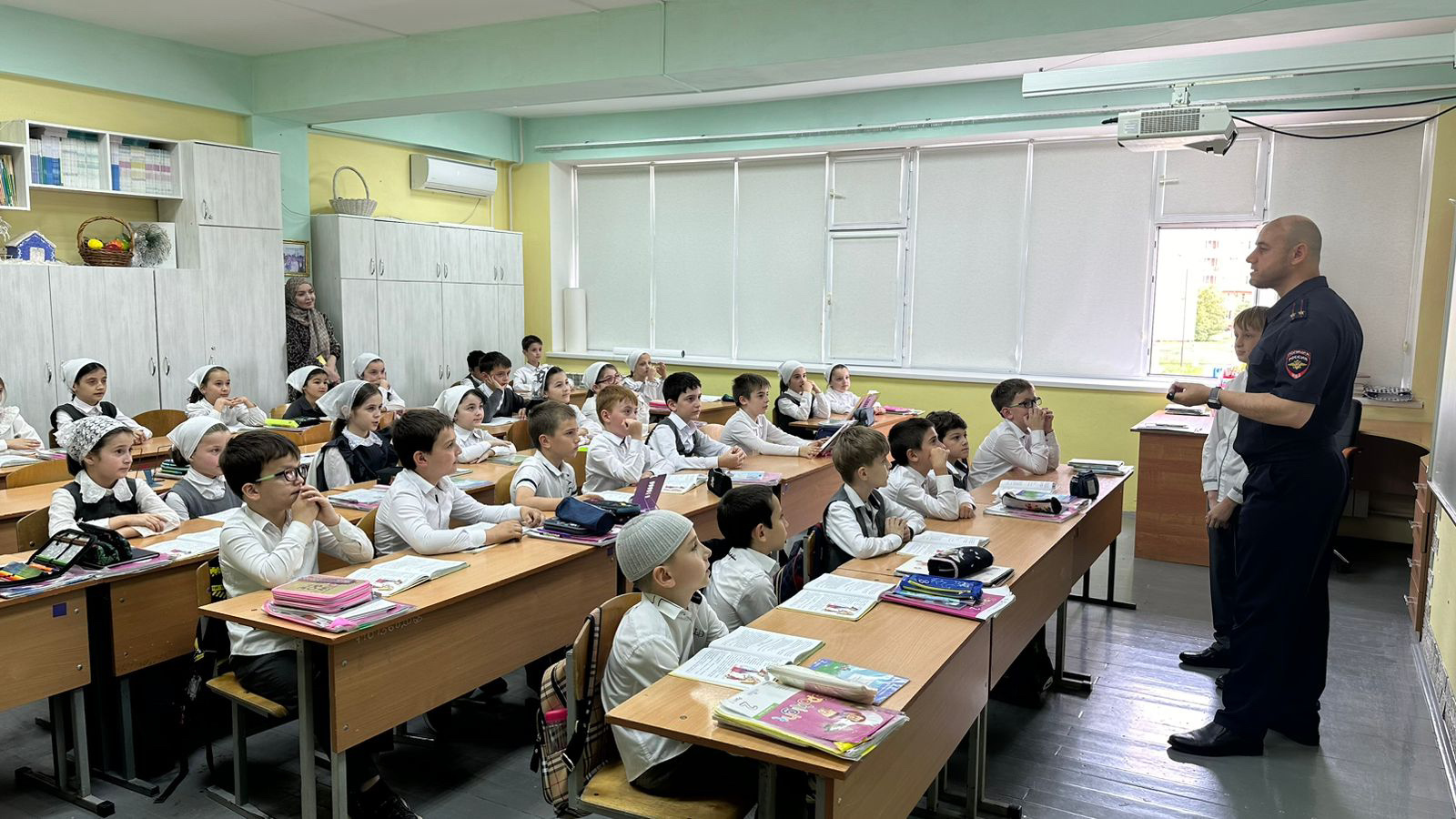 Начальник пропаганды безопасности дорожного движения управления ГИБДД Чеченской Республики Ибрагим Зияудынович Мадаев, посетил МБОУ «Гимназия №14» г. Грозного, где встретился с учащимися начальных классов и провел с ними профилактическую беседу на знания правил дорожного движения.