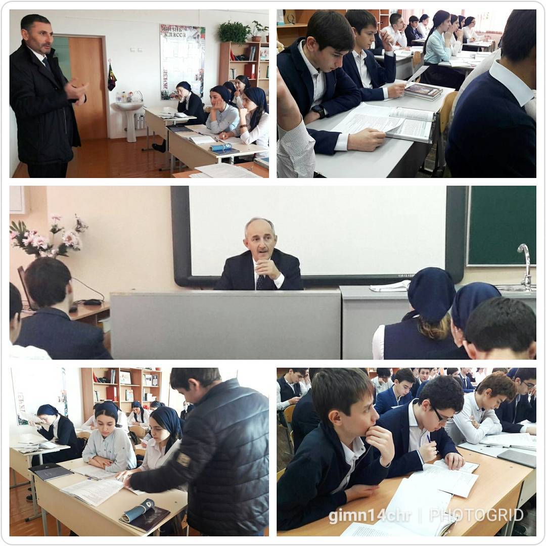 17.11.2017В Гимназии в рамках реализации Единой концепции духовно-нравственного воспитания и развития подрастающего поколения представителями парламента Чеченской Республики - депутатами Бисаевым Исой, Нагаевым Аднаном и помощником депутата Озниевым Магомедом с обучающимися 10 - 11-х классов была проведена беседа по профилактике правонарушений, наркомании, табакокурения, терроризма и экстремизма. Помимо этого во время беседы были затронуты вопросы на знание учениками перевода сур Корана, после чего им были розданы листовки с переводом.