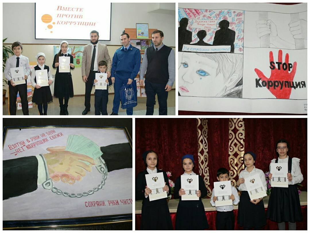 11.12.2017Наши юные гимназисты ученик 1 "Б" класса Даудов Магомед, ученица 7 "В" класса Азамова Танзила и Батаева Лиана, 8 «б» класс, заняли призовые места на Республиканском конкурсе "Вместе против коррупции", приуроченного к международному дню борьбы с коррупцией. Также наши ученики стали победителями в различных номинациях, так Дикаева Даяна (3 "Б" класс) и Саидова Амина (5 "Ж" класс) получили дипломы в номинациях «Креативность замысла» и "Информативность и доступность». Поздравляем наших талантливых гимназистов!