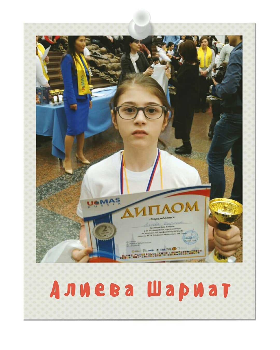 Наша гимназистка, ученица 4 "Г" класса, Алиева Шариат заняла 2-е место в III Всероссийских соревнованиях по ментальной арифметике ЮСИМАС, прошедших в г. Москве.