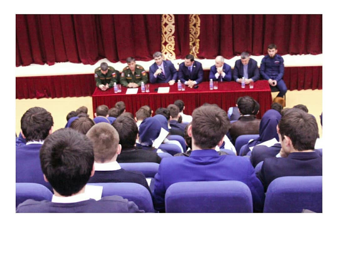 02.04.2018В рамках профилактики правонарушений среди молодёжи призывного возраста в Гимназии прошла встреча обучающихся 8-11 классов с депутатами парламента Чеченской Республики Бисаевым Исой Усмановичем, Нагаевым Аднаном Абдул-Муталиповичем, помощником военного комиссара ЧР Хаджимурадовым Исламом Николаевичем и начальником отдела призыва граждан на военную службу Лулуевым Идрисом Нажмутдиновичем.